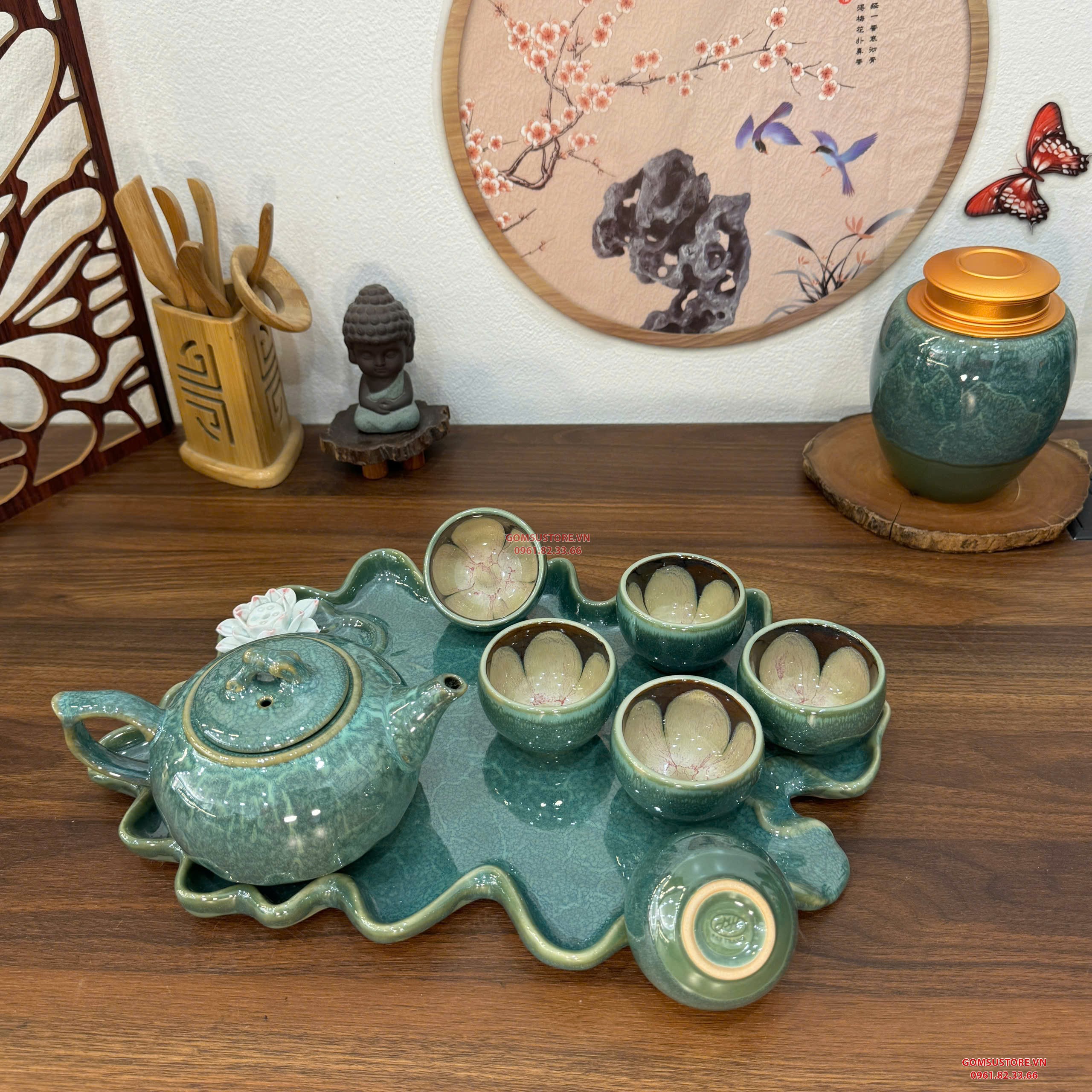 Bộ gồm: 1 ấm trà, 6 chén nhỏ, 1 khay sen