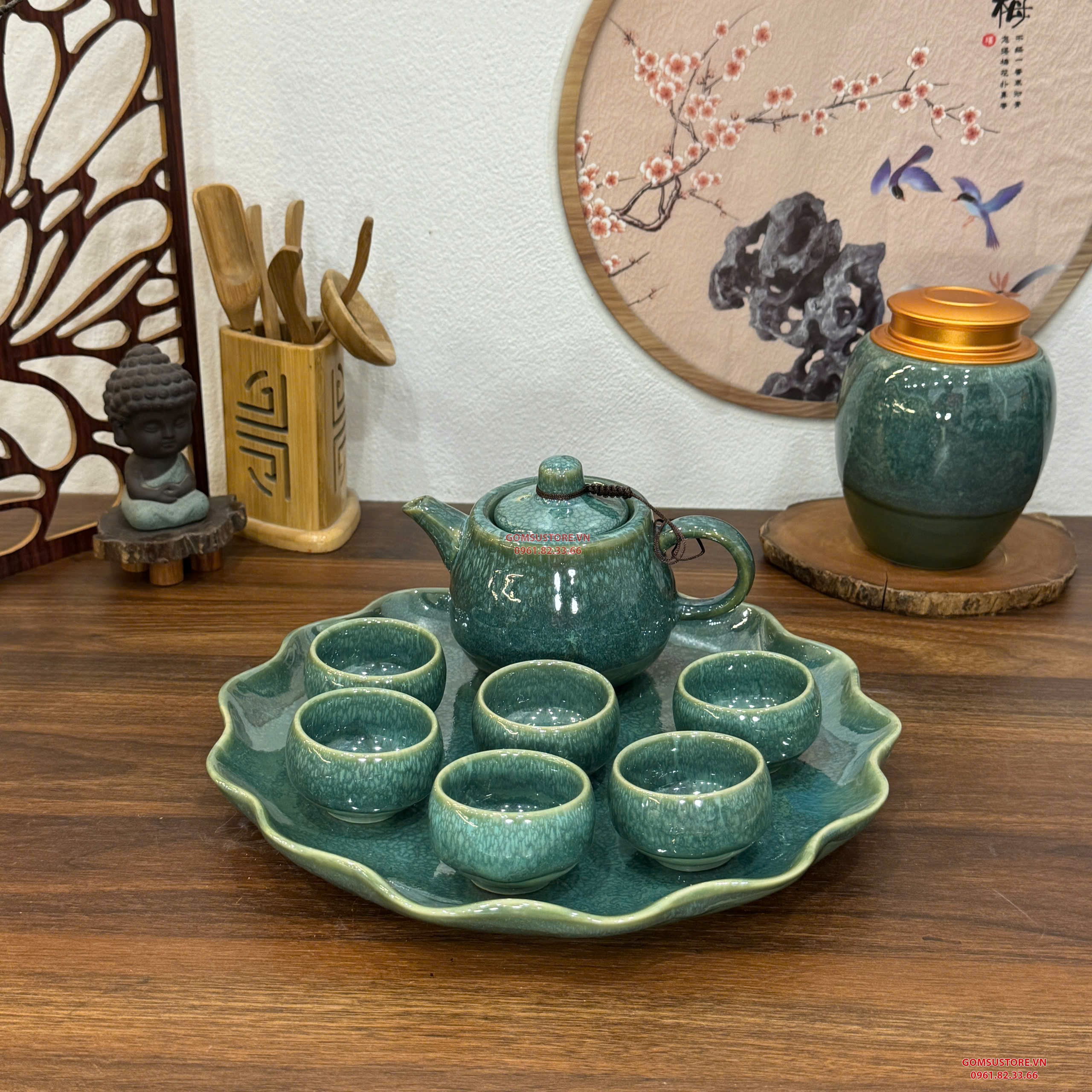 Ấm chén hỏa biến Bát Tràng là sản phẩm độc quyền chỉ có ở Bát Tràng. Với màu men tinh xảo của dòng men xanh ngọc hỏa biến bao phủ. Bộ ấm trà trở nên đẹp mắt và sang trọng thích hợp làm quà tặng hoặc trưng bày tại gia đình các cơ quan hay doanh nghiệp. Hãy cùng bài viết này điểm qua một vài đặc tính đặc điểm của bộ sản phẩm này nhé!