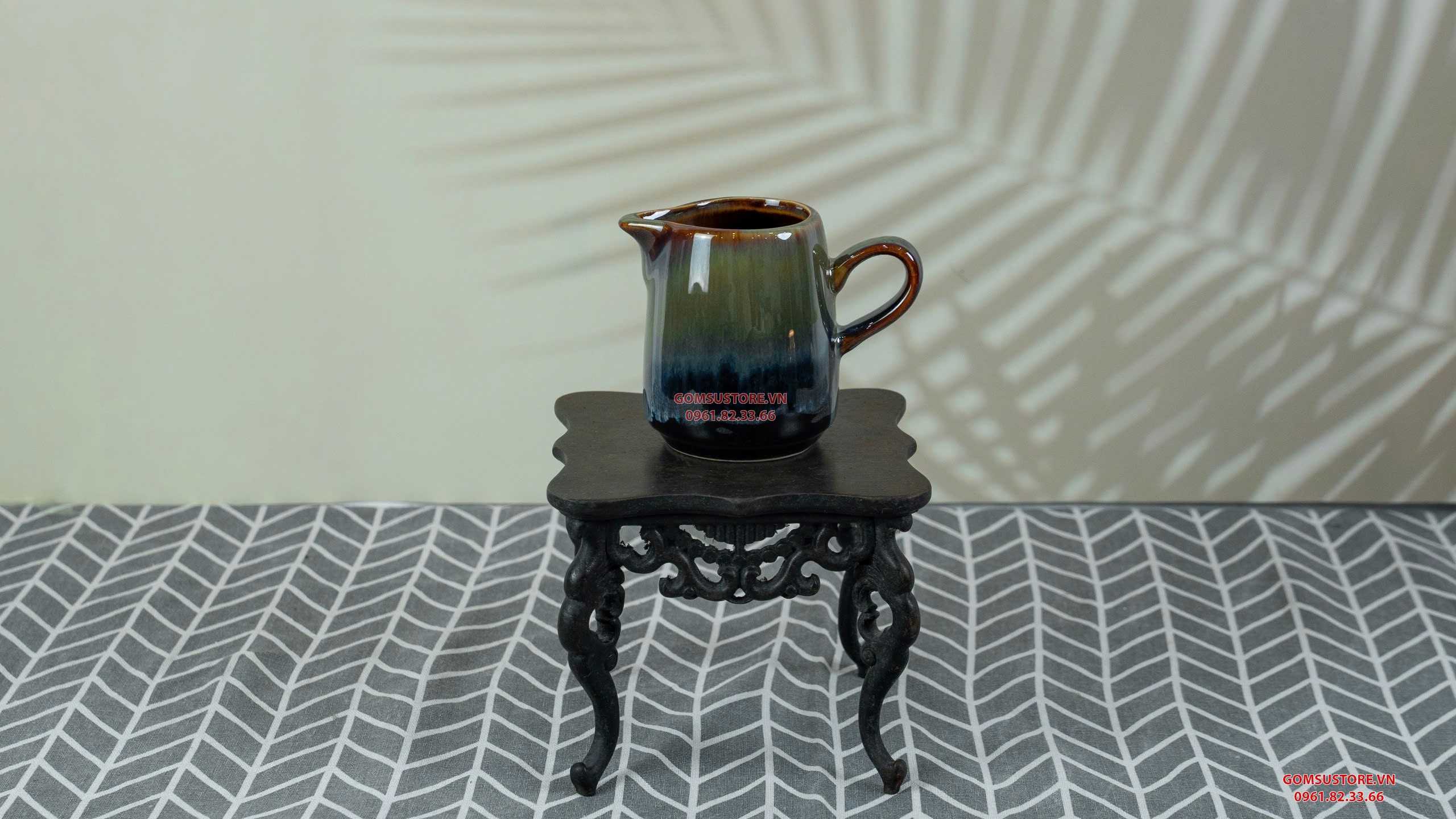 Bộ sản phẩm gồm 1 ấm, 6 chén và 7 đĩa kê, được làm thủ công tại Bát Tràng với công nghệ nung hỏa biến hiện đại tạo hiệu ứng men gương độc đáo. Sắc xanh lục kết hợp cùng viền nâu tạo nên vẻ đẹp mộc mạc, sang trọng, phù hợp dùng làm quà tặng, trưng bày hoặc sử dụng hàng ngày.