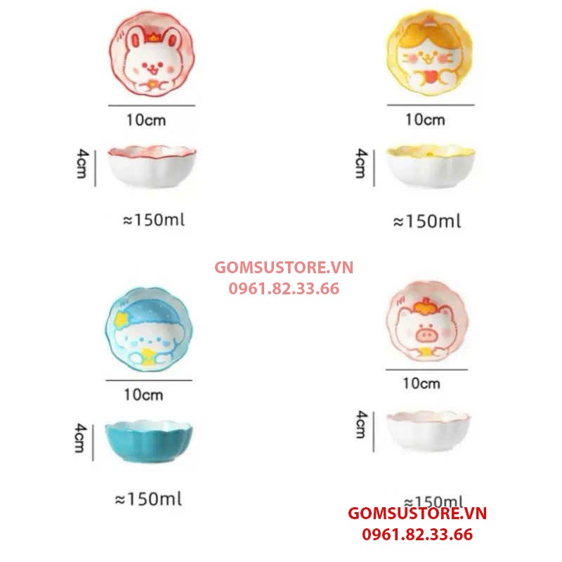 Bát có kích thước đường kính 10cm, cao 4cm, dung tích khoảng 150ml, vừa vặn để đựng gia vị, nước chấm, muối tiêu, nước sốt hay đồ ăn vặt nhỏ xinh. Sản phẩm được làm từ chất liệu sứ dày dặn, an toàn cho sức khỏe, chịu nhiệt tốt và dễ dàng vệ sinh sau khi sử dụng.