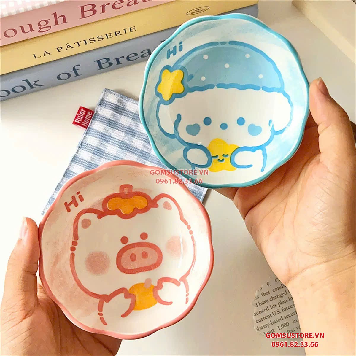 Mỗi mẫu đều được phủ men sáng bóng, in hình dễ thương, giúp sản phẩm không chỉ là vật dụng bếp núc mà còn như món đồ trang trí bắt mắt trên bàn ăn.