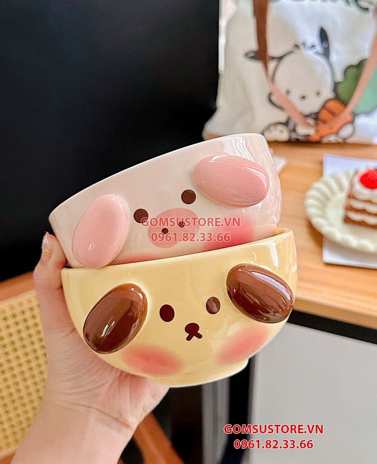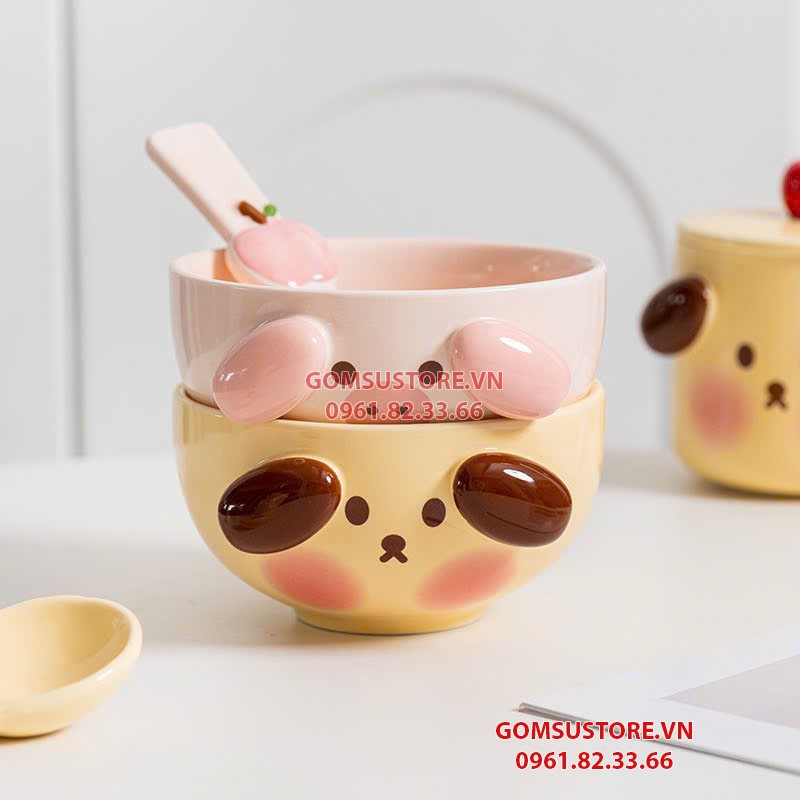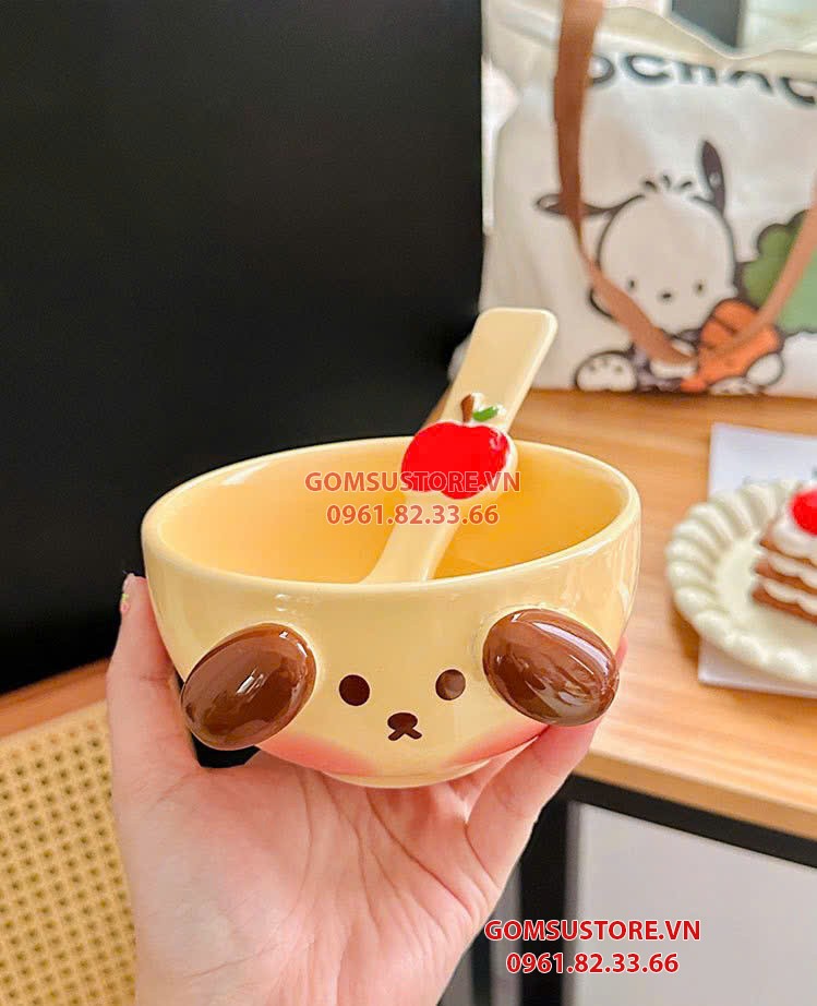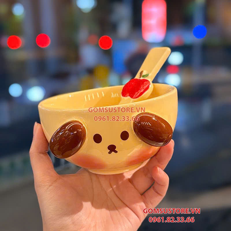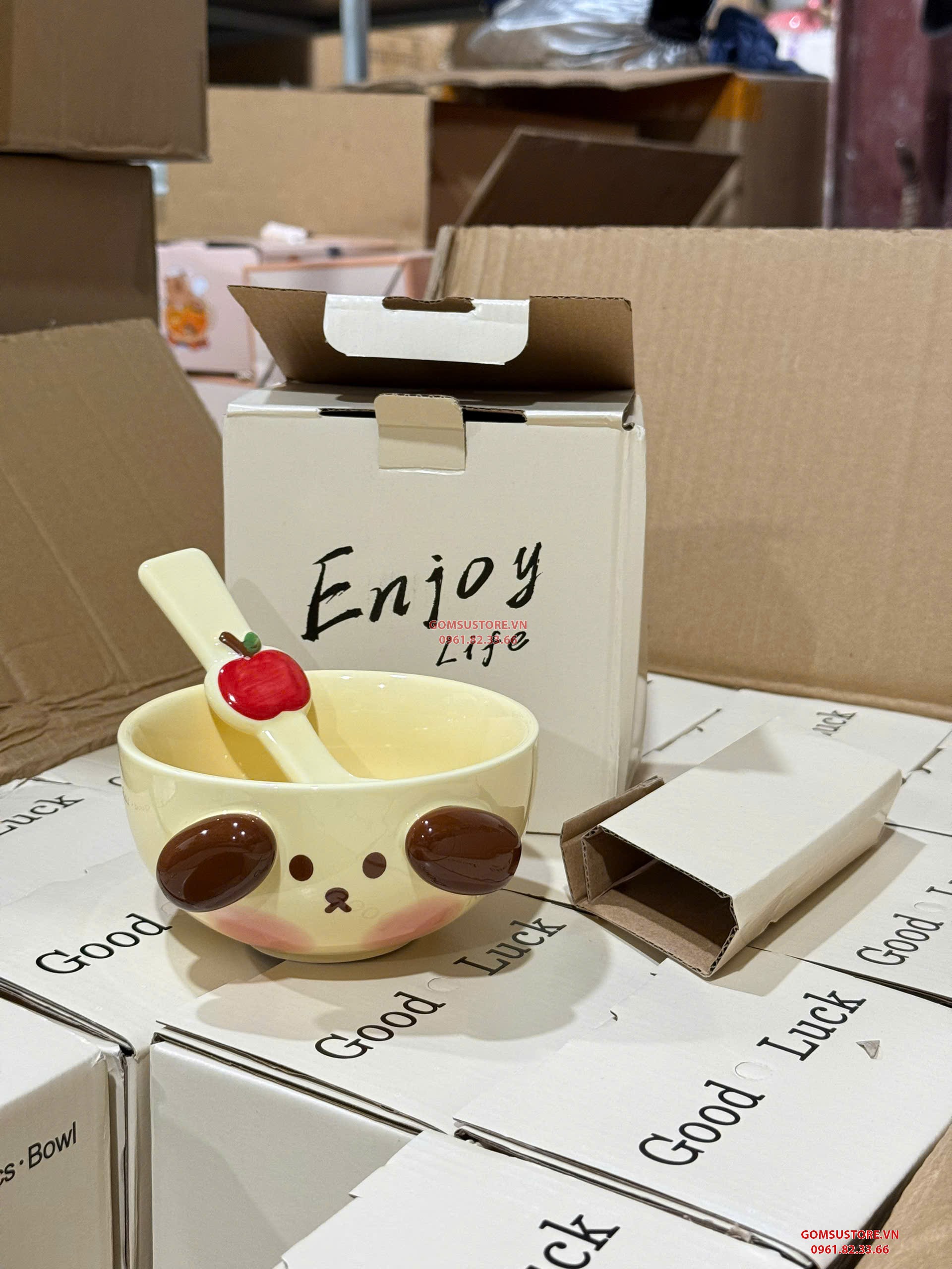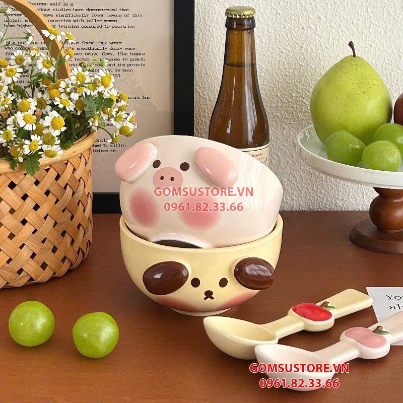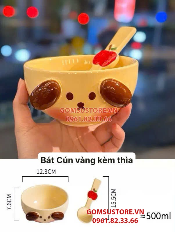 Set bát heo hồng cún vàng kèm thìa hộp quà 12.3cm x 7.6cm dung tích 500ml
